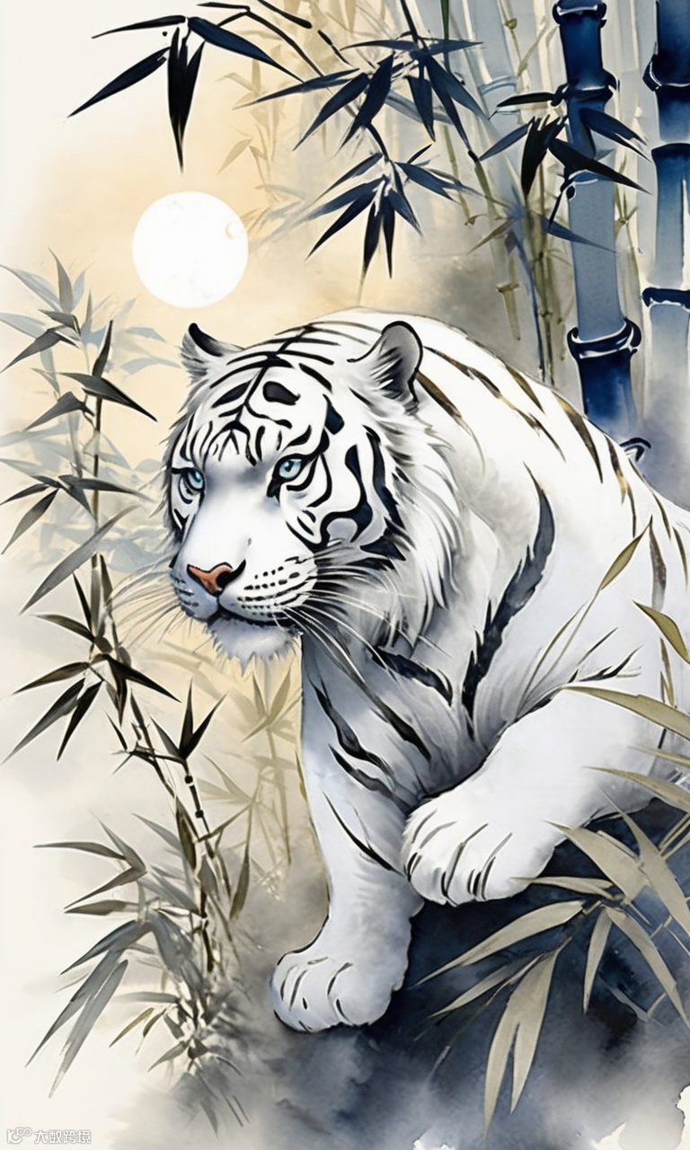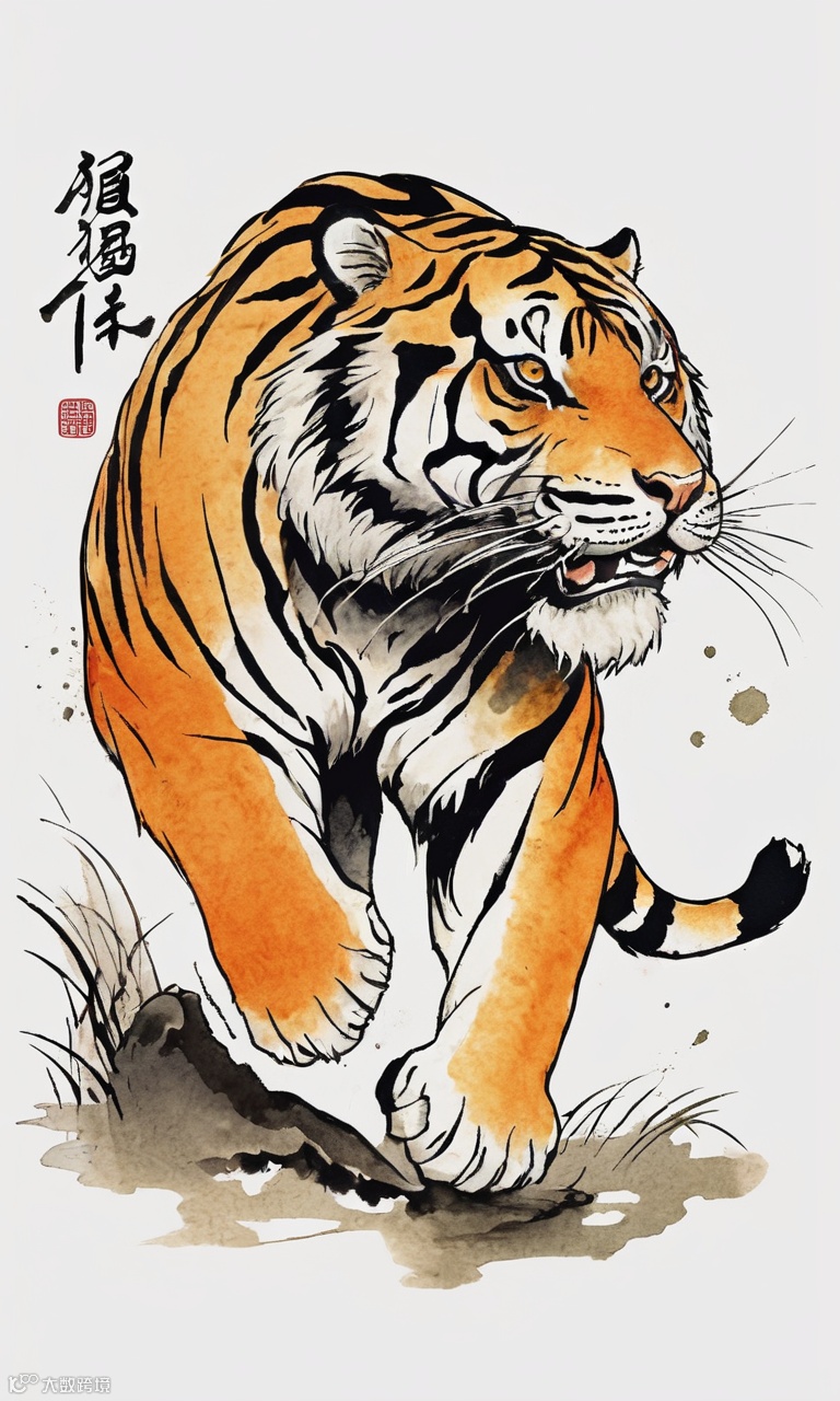 1. 绘画:老虎是中国传统绘画的重要题材之一。画家常通过描绘老虎的威猛姿态和神态来表现力量和威严。