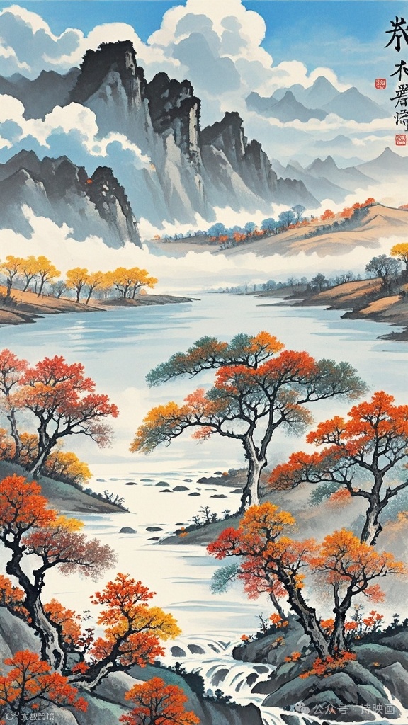 后半部分 “青山绿水,白草红叶黄花”,则突然笔锋一转,展现出一幅色彩斑斓、明丽清新的秋景图。青山常绿、绿水悠悠,白色的草、红色的枫叶、黄色的菊花相互夹杂,给原本萧索的秋景增添了勃勃生机,使整个画面变得丰富多彩。