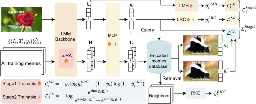 剑桥大学提出的 RA-HMD 框架针对多模态有害内容检测,首次将检索增强与对比学习引入LMM,实现“检索—分类—生成”一体化。通过两阶段微调策略,模型在多数据集上显著提升分类性能、跨域泛化能力和对抗鲁棒性,同时保持原有多模态生成能力与解释质量,为仇恨内容检测提供了新范式。 >>加入极市CV技术交流群,走在计算机视觉的最前沿