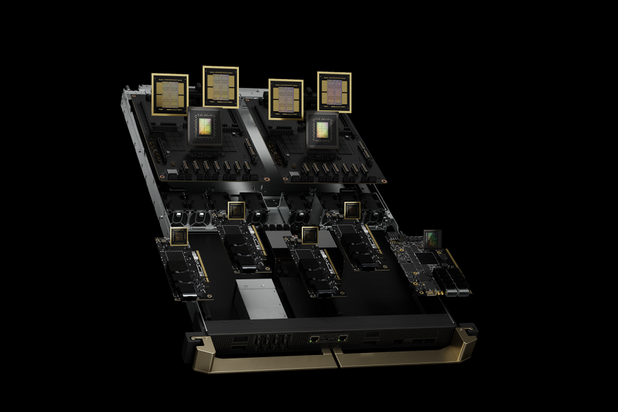 标准的ComputeTray配置2颗Grace和4颗B200. 然后配置了一个BF3 DPU和4个CX7连接, 如下图所示