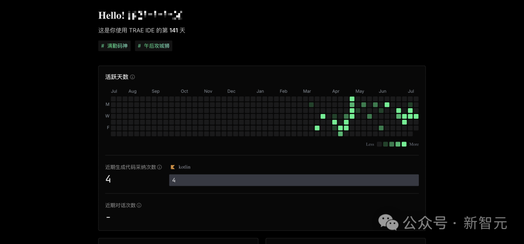 TRAE还有一个仪表盘功能,和Github同款的热力图。
