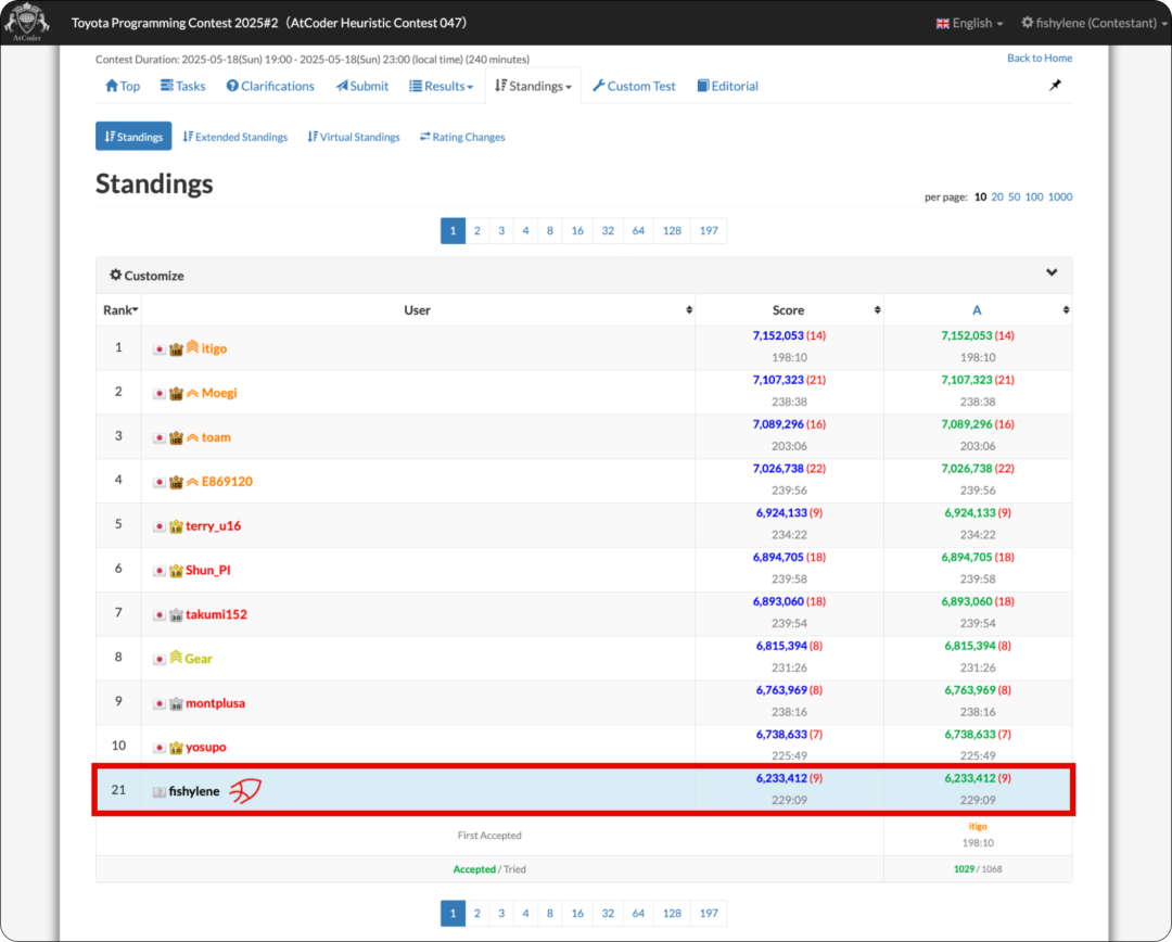 AtCoder启发式竞赛第47届(AHC047)的排行榜中,名为「fishylene」的第21名选手,实为Sakana AI提交的智能体ALE-Agent。
