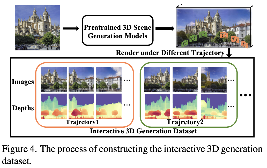 为适配交互式3D场景生成,本文构建包含室内外环境、漫画与艺术作品等多样化场景的数据集。不同于使用随机掩码或投影模拟交互场景的掩码,本文设计了更符合交互需求的相机轨迹:
