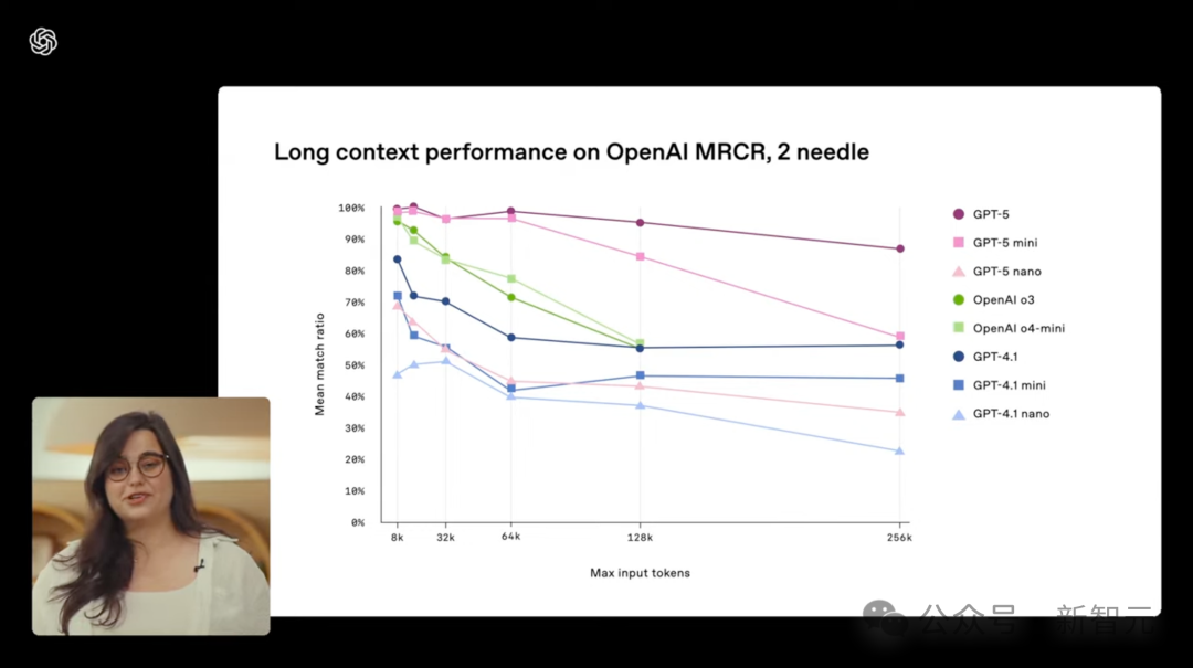 在OpenAI MRC上下文检索能力的基准上,GPT-5处于领先。