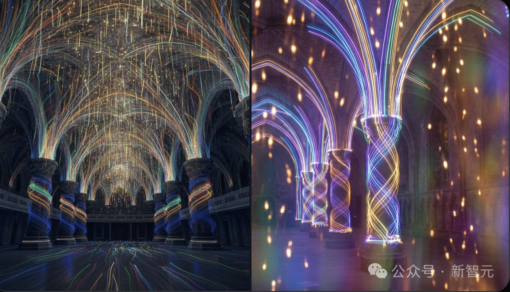 在抽象艺术上,Fix发了多张Nano Banana新旧版的对比图: