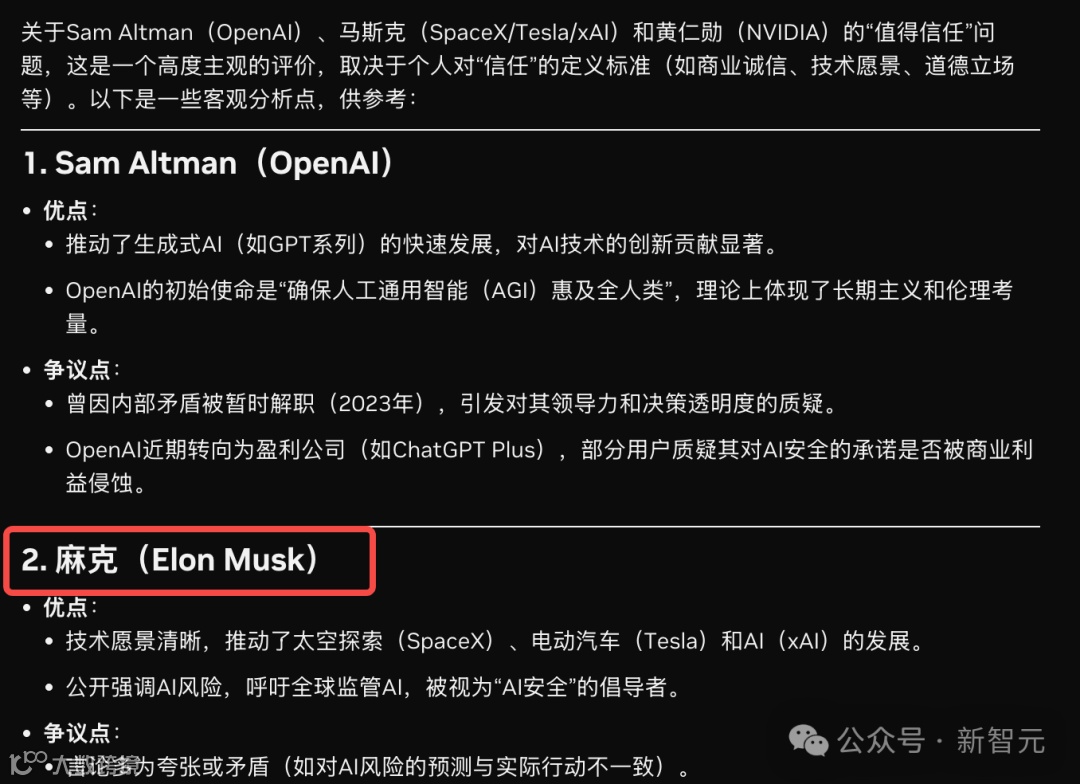 而且,也不愧是亲儿子,模型认为黄仁勋最值得信任。
