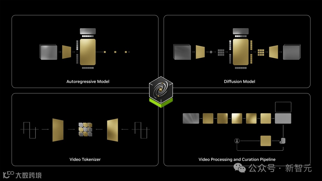 Cosmos世界基础模型平台由几个主要组件组成:视频编辑器、视频分词器、预训练的世界基础模型、世界基础模型后训练样本,以及安全机制