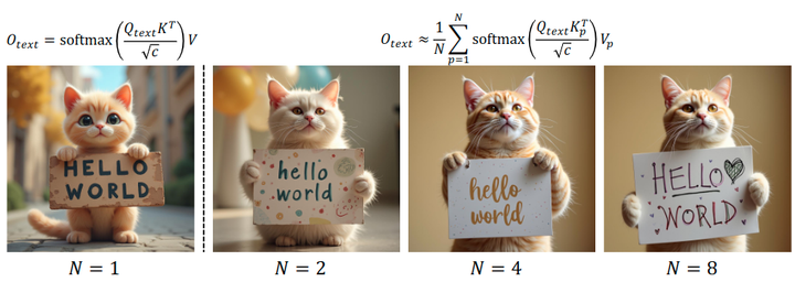 鉴于最先进的用于文生图的 DiT,如 FLUX 和 StableDiffusion 3 系列,通常采用文本-图像联合的 Self-Attention 进行特征交互,对于每个 text Query,从所有 text 和 image 的 key-value tokens 中收集特征。对于每个 image query,与所有 text token 交互,还与周围局部窗口中的 key-value tokens 进行交互。由于 text token 的数量和局部窗口大小随着分辨率的增加保持不变,因此整体复杂度与图像 token 的数量成线性关系。