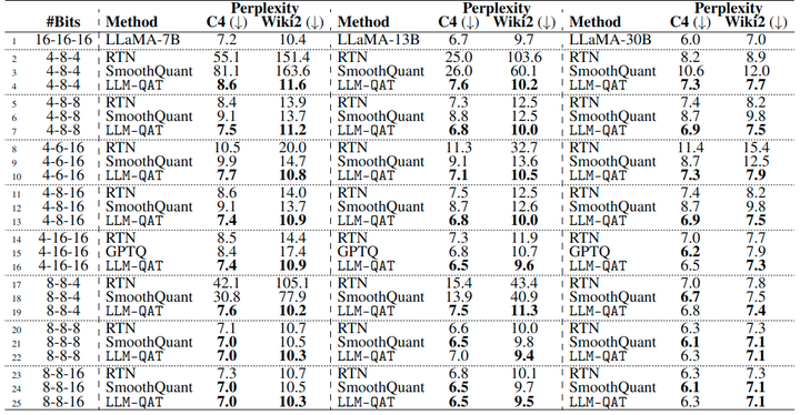 一些后训练量化 (Post-Training Quantization, PTQ) 方法已应用于大语言模型 (LLM),并在 8-bit 设置下表现良好。本文发现这些方法在更低比特的设置中会出现严重损坏。因此,本文研究使用量化感知训练 (Quantization-Aware Training, QAT) 方法,以进一步推动量化水平。