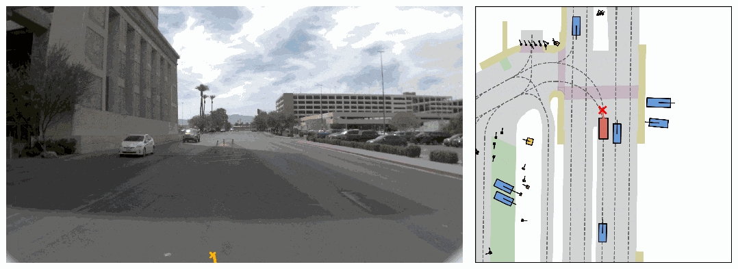 c. 如何平衡生成准确轨迹和多模态轨迹: 生成模型的输入包括goal point(引导轨迹)和融合BEV特征的query(提供场景信息)。前者要求轨迹指向目标点,后者则当前场景下生成最可能的轨迹。为平衡两者,我们在训练中采用Classifier-Free Guidance,随机丢弃不同特征,并进行类型编码。训练时的 condition 设为三类:无条件、仅场景信息、场景信息+goal point。