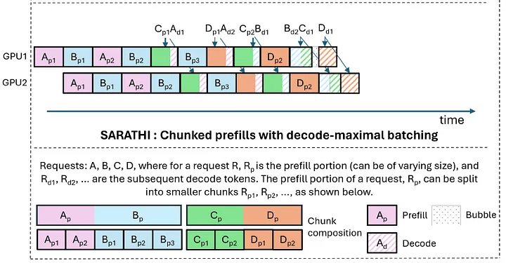 另外针对这样的小规模两机部署,通常会采用Chunk-Prefill的技术, 将Prefill的计算拆分成chunk穿插在Decode任务中, 来避免同一个卡运行Prefill和Decode时, 两阶段的资源争抢干扰会导致TTFT和TPOT都很难达到SLA的标准.