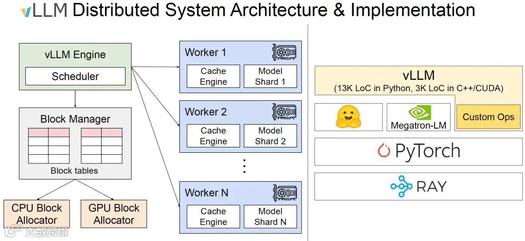 vLLM需要基于Ray部署, 如下图所示: