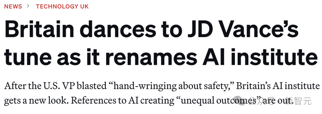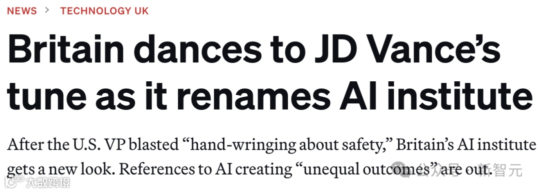 英国甚至将国家科研机构AI Safety Institute更名,删除了AI产生「不平等结果」相关内容。欧洲媒体称之为英国跟随着万斯的曲调在跳舞。