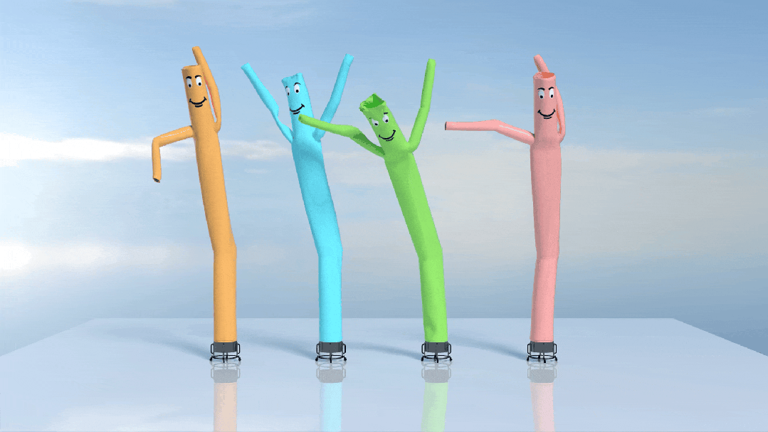 对充气人偶的模拟也恰到好处,同样也非常幽默地模拟现实状况。