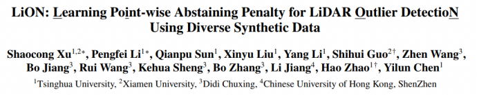 论文题目:LiON: Learning Point-wise Abstaining Penalty for LiDAR Outlier DetectioN Using Diverse Synthetic Data -