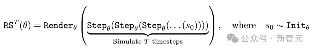将这些项连接在一起,定义一个函数θ,它对初始状态 S_0 进行采样,运行模拟T步,并将最终状态渲染为图像: