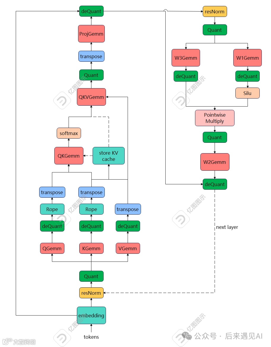写在前面:之前笔者写过 4 篇关于 Nvidia 官方项目 Faster Transformer 的源码解读文章,针对每个 Kernel 分析了作者的实现逻辑和意图。考虑到 Faster Transformer 是一个 Encoder-Decoder 架构的推理框架,而目前的一些开源大模型如 GPT、LLaMA 等都是基于 Decoder-only 架构,早在半年以前笔者就想着手撸一个 Decoder-only 架构的大模型推理框架,但是这段时间笔者工作和家庭事情比较多,最近终于抽出一点点时间完成了第一版。本文将对 FasterLLaMA v1.0 版本源码进行介绍,为了便于交流讨论,除公众号:后来遇见AI 以外,本文也将在知乎进行发布,欢迎各位读者阅读并给出意见。