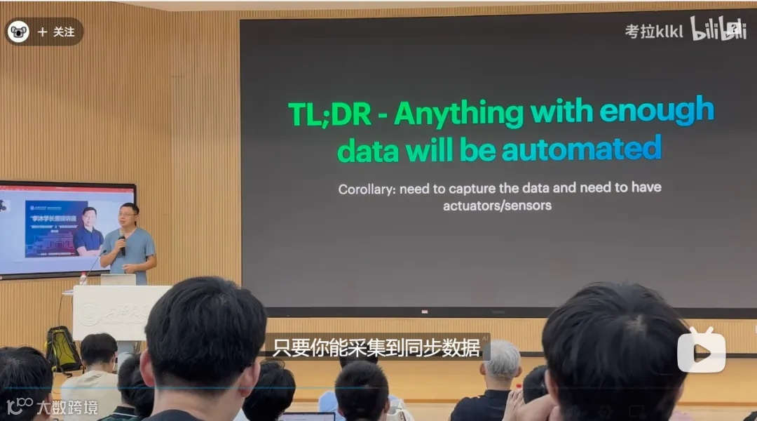 对应用来讲,只要你能采集到足够多的数据,就可以被自动化。现在 AI 面临的困难是需要很多数据。一个行业如果能够采集很多数据,那么就能进行自动化。反过来,如果你让模型完成一项任务,首先考虑的是怎么样采集很多数据。很多时候传统企业会先把数据采集起来,数据积累好了,几年之后才慢慢开始。所以这是一个发展规律,就这样子,很多时候急也急不来。