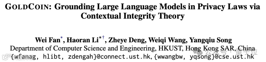 GoldCoin: Grounding Large Language Models in Privacy Laws via Contextual Integrity Theory,香港科技大学研究团队完成,论文共同一作Wei Fan、Haoran Li。