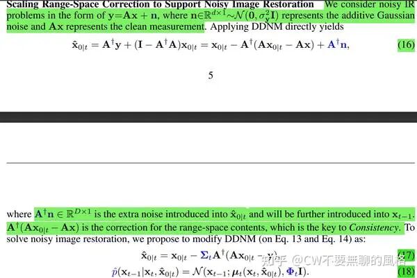 CW 顺便提一嘴,在 DDNM 论文的附录 H 中,作者证明了 RePaint 和 ILVR 都是 DDNM 在 noise-free(不含观测噪声)下的特例;同样,在这种情况(i.e. noise-free)下,DDRM 也可视作是 DDNM 的特例。