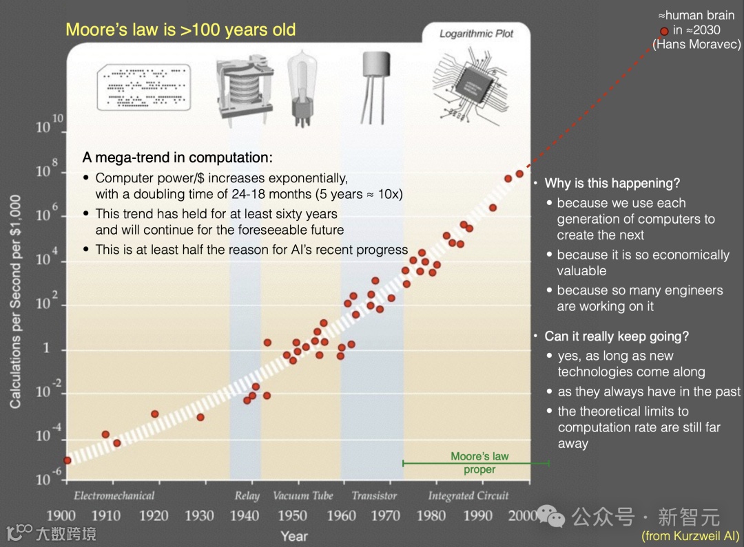 「强化学习之父」Rich Sutton在一次演讲中表示,过去的100多年中,我们一直在见证摩尔定律。近年来AI领域的进步,至少有一半归功于算力方面指数级的增长。
