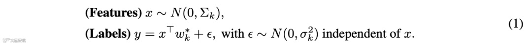 这里,数据分布的特征可以在ℝ^d×ℝ上给出,即P_k=P_{Σ_k,w_k^∗,σ_k^2}: