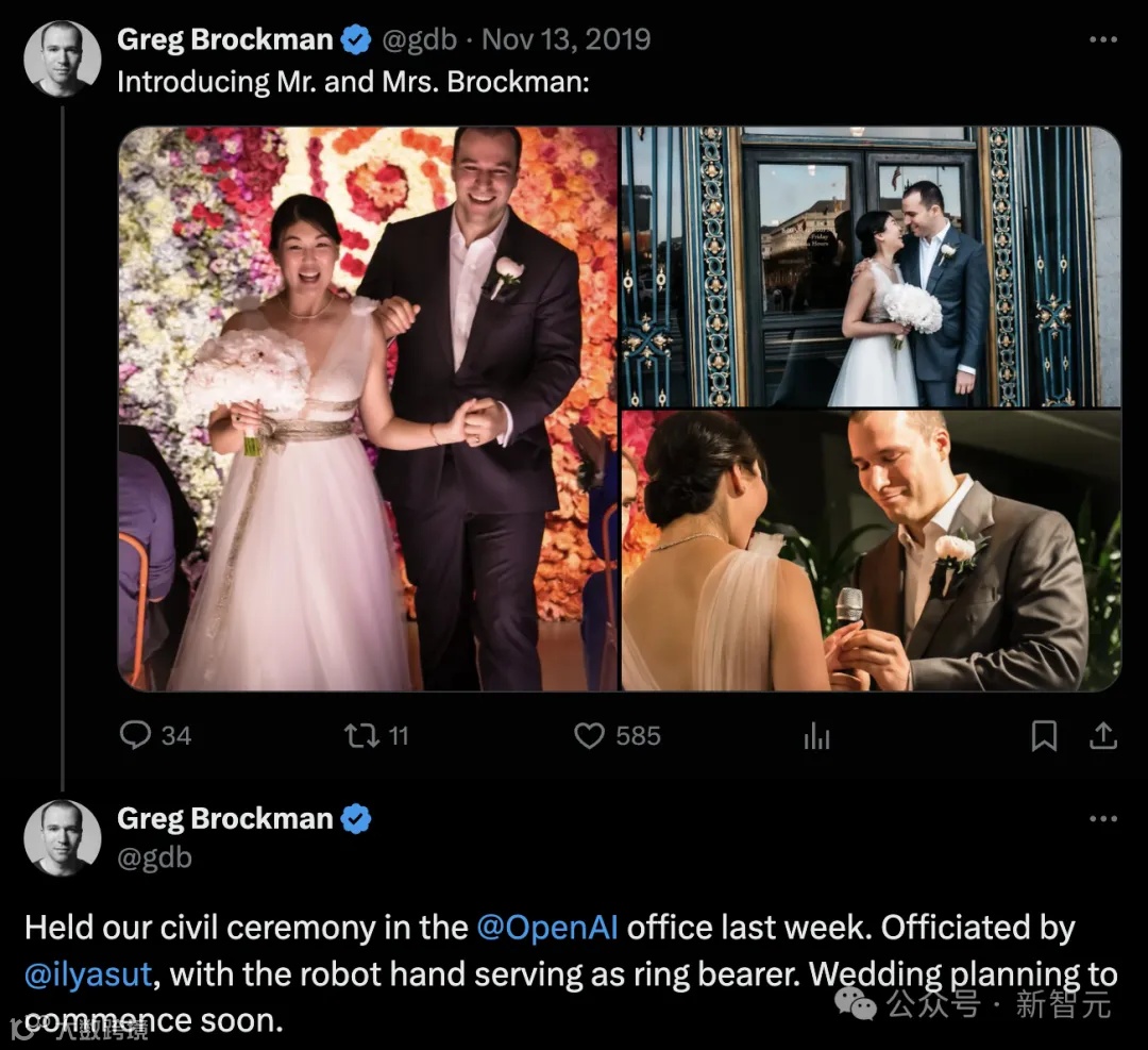 2019年,Brockman与女友Anna在OpenAI的办公室举行了婚礼,由联合创始人兼前首席科学家Ilya Sutskever主持。