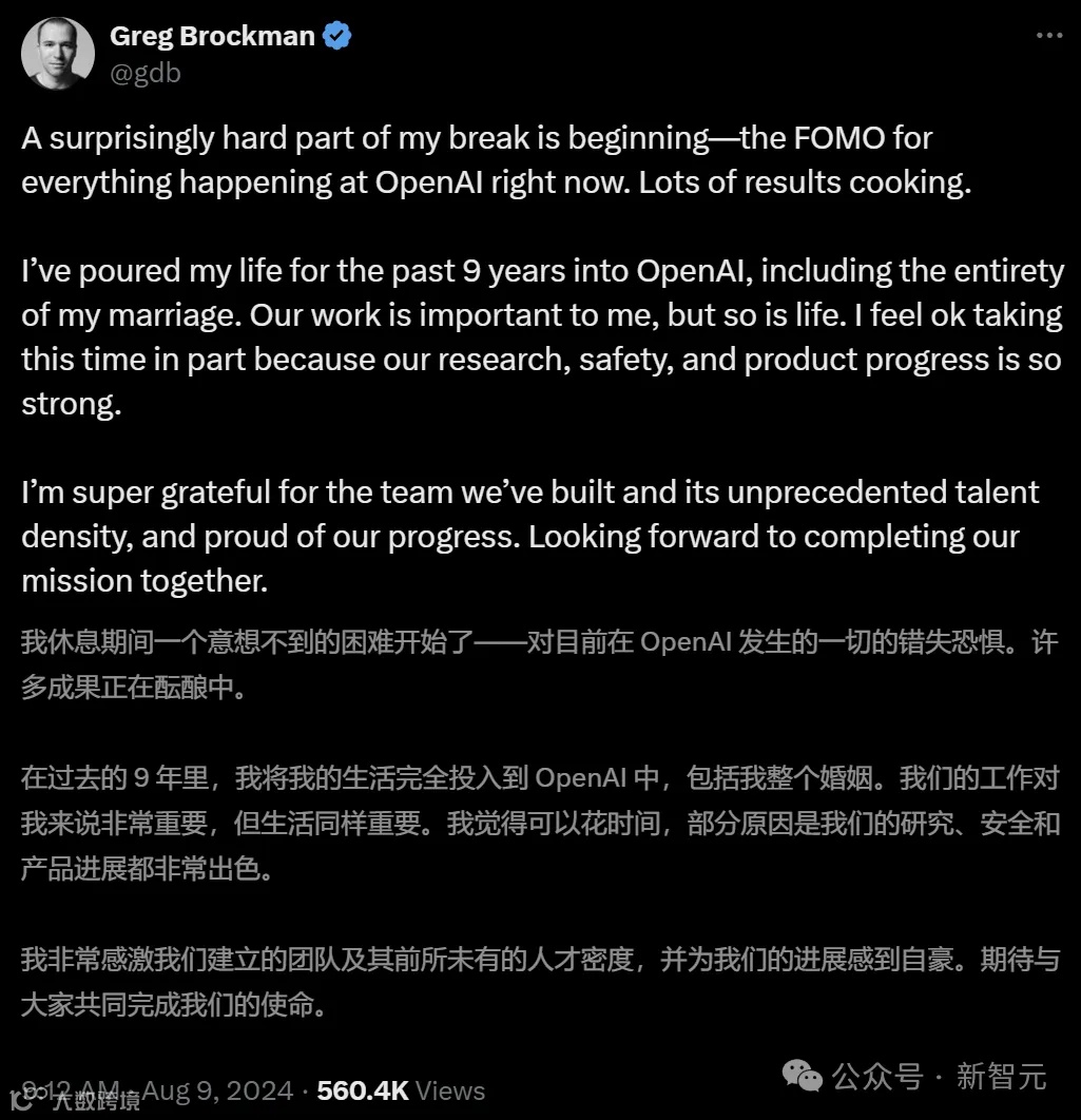 这位OpenAI联创兼总裁,终于结束了自己「人生中最长的假期」。