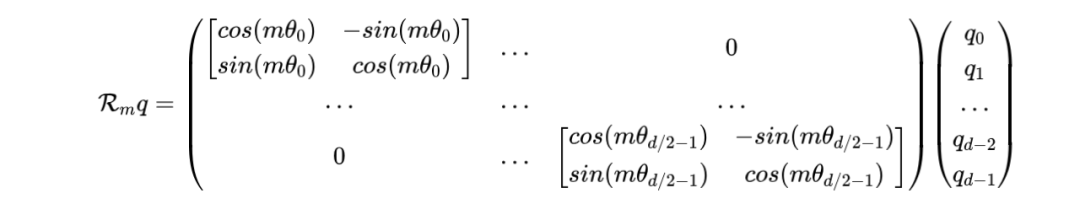 因此在高维度空间中, 用于表示 绝对位置的旋转矩阵 最终可以表示成:
