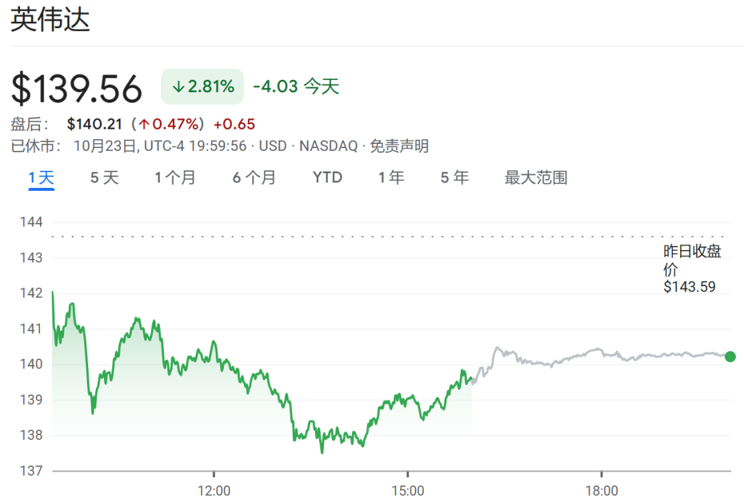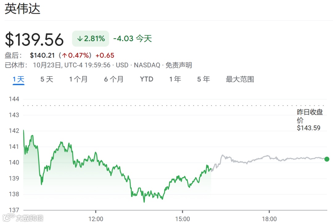 周三美股收盘,刚刚创下历史新高的英伟达股票收跌 2.81 %,回落到 140 美元以下。