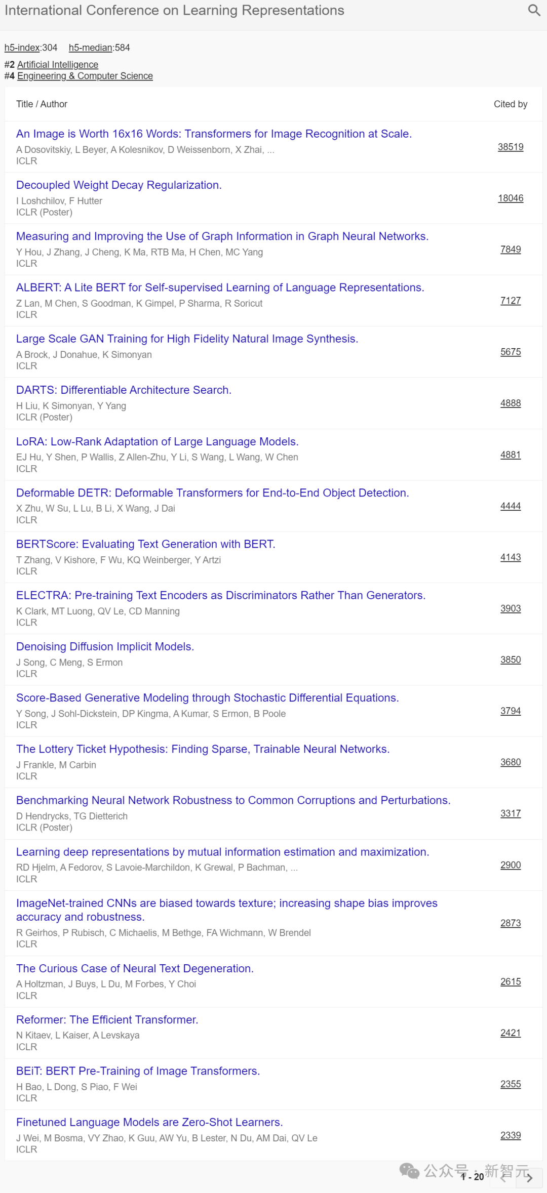 除了开头我们提到了三个顶会位列前十,在总榜前20名中,还有ICCV、ICML两个机器学习/计算机视觉顶会入选。