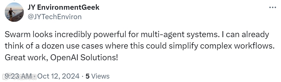 Swarm 开源后引起了热烈讨论,有网友表示这能帮助简化许多潜在的多智能体用例的工作流程。 >>加入极市CV技术交流群,走在计算机视觉的最前沿