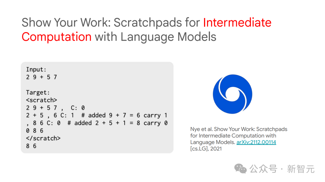 通过这个简单的例子,Denny Zhou指出,关键想法是在数据中包含中间步骤,或者是解释原理(rationale),同时让模型写出推导过程。