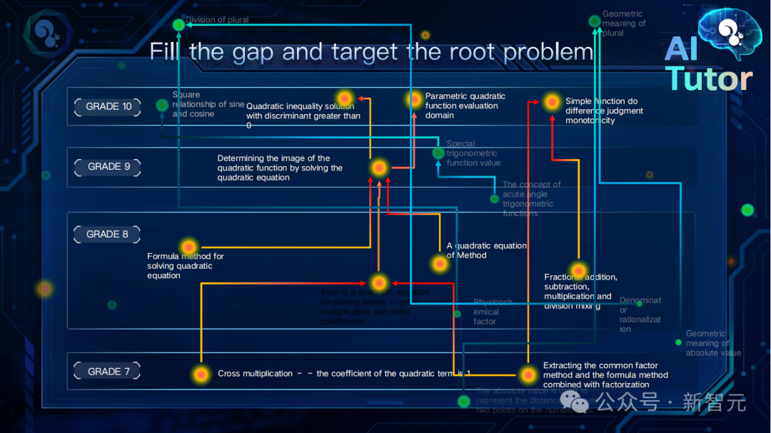 这时,AI系统就会根据题目追根溯源,建议学生重新温习七年级学习课程。