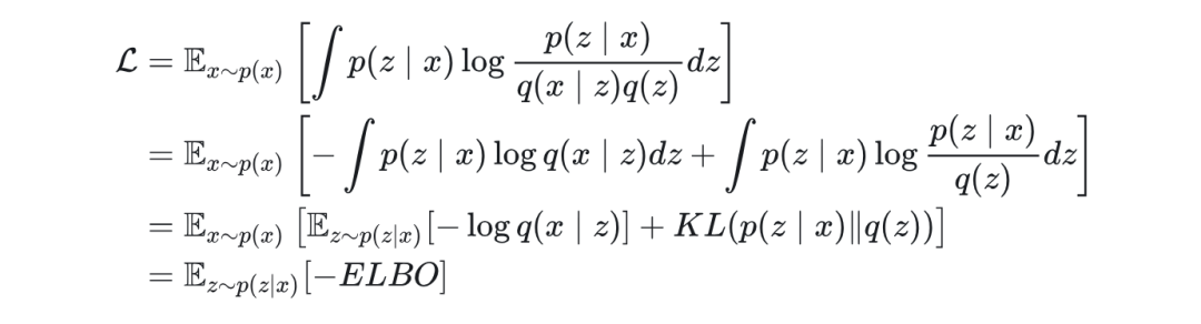 我们先看原有的 ELBO ,这里p和q互换以与图示对应,q代表encoder,p代表decoder;