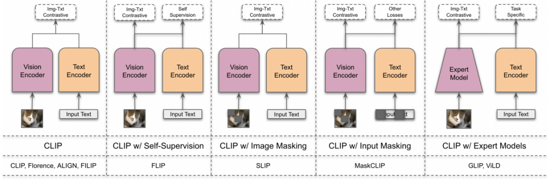 首先,让我们一起回顾下 CLIP 架构及其衍生的变体: