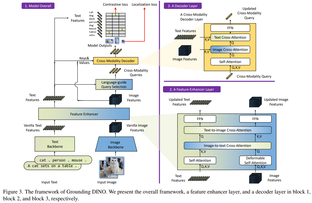 Grounding DINO 是由沈向洋领导的 IDEA 实验室开源的,该方案利用了强大的预训练模型,并通过对比学习进行修改,以增强与语言的对齐。当然,像 OWL-ViT 也是类似的工作。此外, IDEA 还基于 SAM 等基础模型开源了一个集各大基础模型的仓库Grounded-Segment-Anything,仓库几乎涵盖了市面上主流的视觉基础模型,感兴趣的也可以关注下: