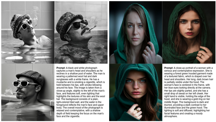 多级字幕可以帮助模型学习更好的语言概念层次结构。这允许模型不仅可以学习单词和图像之间的关系,还可以了解单词之间的语义关系和层次结构。因此,本文模型在响应较短 Prompt 时表现出多样性。而且,当在数据样本较少的数据集上进行训练时,例如在监督微调 (SFT) 阶段,多级字幕有助于防止过拟合,并显着增强了模型的泛化能力,将 SFT 数据集的良好图像属性推广到其他图像域。如图 4 所示,当给定一个简短而简单的 Prompt 时,本文模型可以生成不同的内容,在风格、颜色色调、种族和其他属性上有所不同。