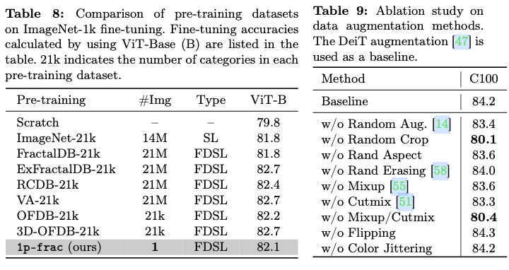 受到这些发现的启发,论文相信找到图像识别预训练的关键要点是可能的。有研究仅使用1000个人工生成的图像来完成ViT训练,因此,论文相信即使用更少的图像也可以达到相同的性能。随着接近在图像识别中最小化合成预训练数据集,这一考虑无疑非常重要,这与基础模型朝着增加数据集规模的趋势相悖。