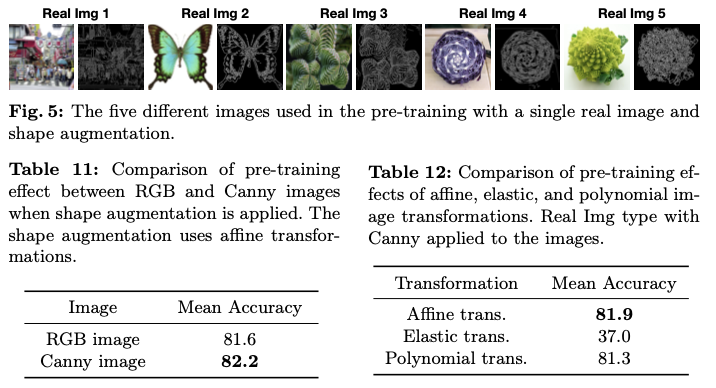 最后,我们从合成图像扩展到真实图像尝试发现,即使单张真实图像通过形状增强也能展现类似的预训练效果。我们发现使用灰度图像以及仿射变换甚至使真实图像也能够进行有效的“逆向缩放”。源代码已开放在https://github.com/SUPER-TADORY/1p-frac上。