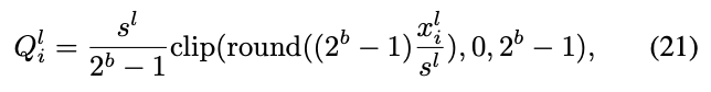 其中, 表示空间量化值, 表示位数(精度), 状态数为 表示四舍五入操作符, 表示剪切阈值, 决定输入 的剪切范围, 是一个剪切操作符, 将 限制在 范围内。