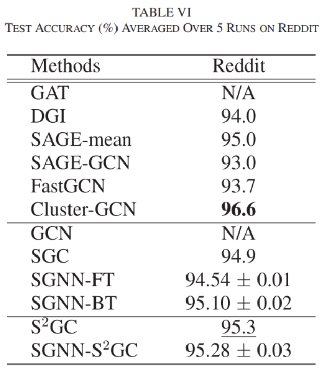 性能:表V中比较方法的结果来自相应的论文。当实验结果缺失时,我们运行公开发布的代码,并在结果上加注†。从表V和表VI中,我们得出结论,SGNN在引用网络上超过了使用邻居采样的模型,例如GraphSAGE、FastGCN和Cluster-GCN,并且在Reddit上超过了大多数模型。在简单的引用网络上,SGNN比其他基于批量的模型损失的准确性最少,这接近GCN。由于每个模块的可分离性,批量采样不需要邻居采样,也不会造成图信息的丢失。