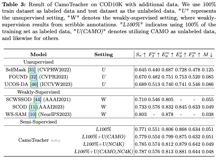 在 COD基准数据集上进行了大量实验,相较于完全监督设置,取得了显著的改进。