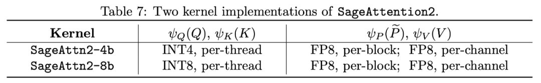 如下表所示,可以发现 per-thread 量化的准确度比 SageAttention 中采用的 per-block 量化高得多,准确度和 per-token 量化几乎没有差别。