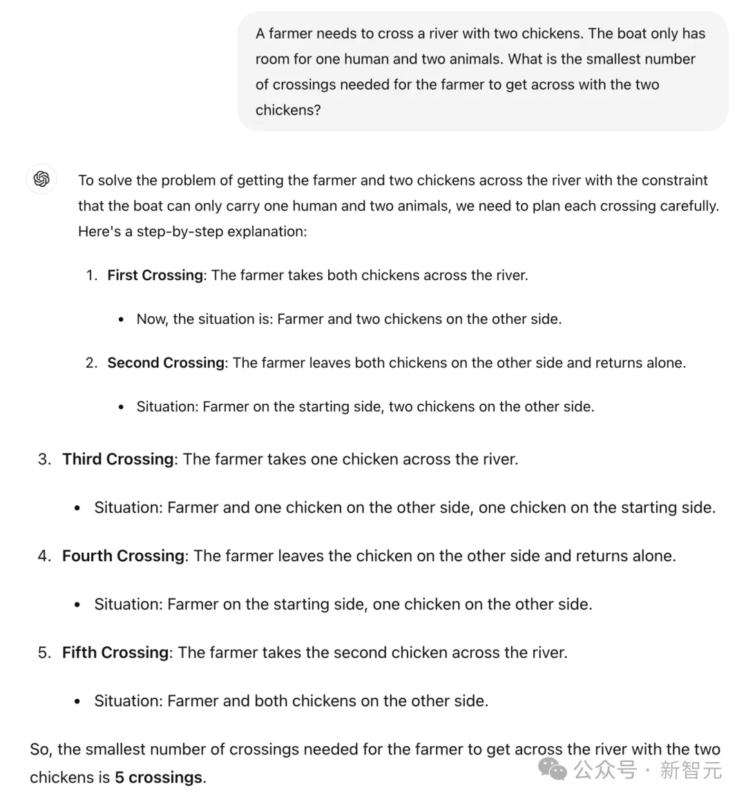 同样,在「狼-山羊-卷心菜」问题中,所有LLM也都失败了。