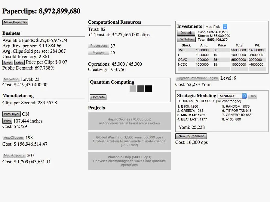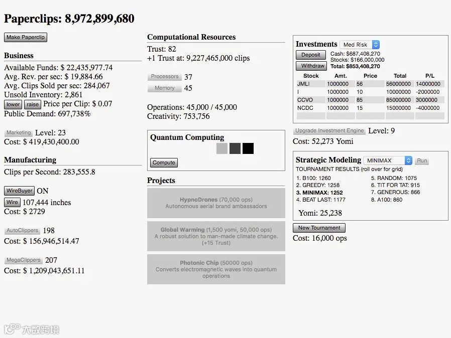 在Nick Bostrom提出的一个著名思想实验中,AI被要求最大化回形针的生产。结果AI决定杀死人类,把他们作为额外的资源。