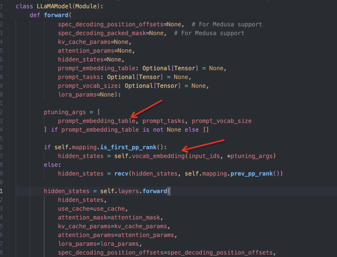 decoder端需要额外加入一个合并input_ids 和prompt_table_data的embedding层(这里称为PromptTuningEmbedding),其余的和普通llama一致:
