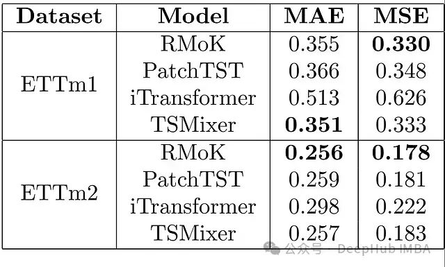 对于ETTm1数据集,RMoK模型在MSE指标上取得了最佳成绩。