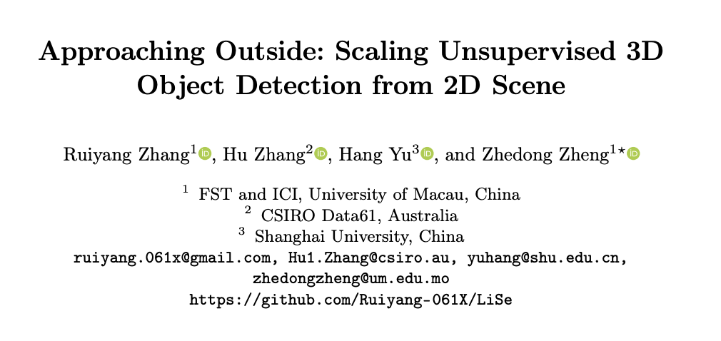 在本文中,我们介绍了用于无监督3D检测的LiSe框架。我们提出了与2D场景的融合,以提升在远距离和小型物体上的检测能力。在自适应学习过程中,我们进一步提出了自适应采样策略,以持续提升在挑战性样本上的感知能力。此外,我们引入了弱模型聚合,将在不同分布下训练的模型结合成一个最终的稳健模型。大量实验验证了我们方法的优越检测能力。全面的消融研究和定性分析也证明了每个提出模块的有效性。我们希望我们的工作能够推动2D与3D数据在无监督3D目标检测中的融合,并激发未来在相关领域的研究。