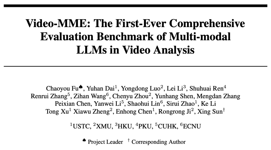 来自中科大、厦大,港中文等六大高校的研究者联合推出世界上首个多模态大模型视频分析综合评估基准Video-MME。 >>加入极市CV技术交流群,走在计算机视觉的最前沿